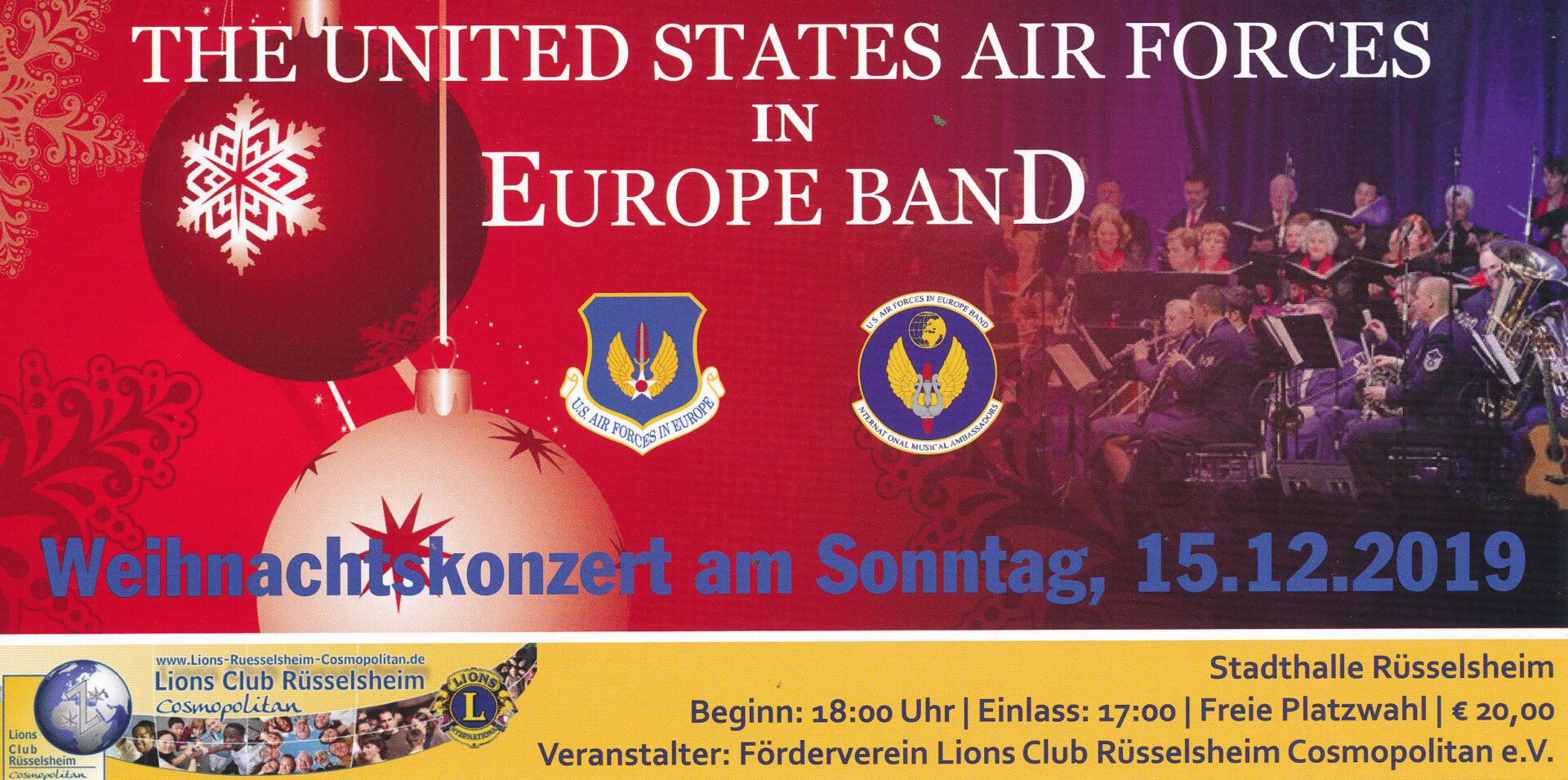 Auch in diesem Jahr dürfen sich Musikliebhaber wieder auf ein besonderes Highlight in der Vorweihnachtszeit freuen: Der Lions Club Rüsselsheim Cosmopolitan lädt gemeinsam mit der renommierten USAFE Concert Band Europe zum 11. Weihnachtskonzert in die Stadthalle Rüsselsheim ein.